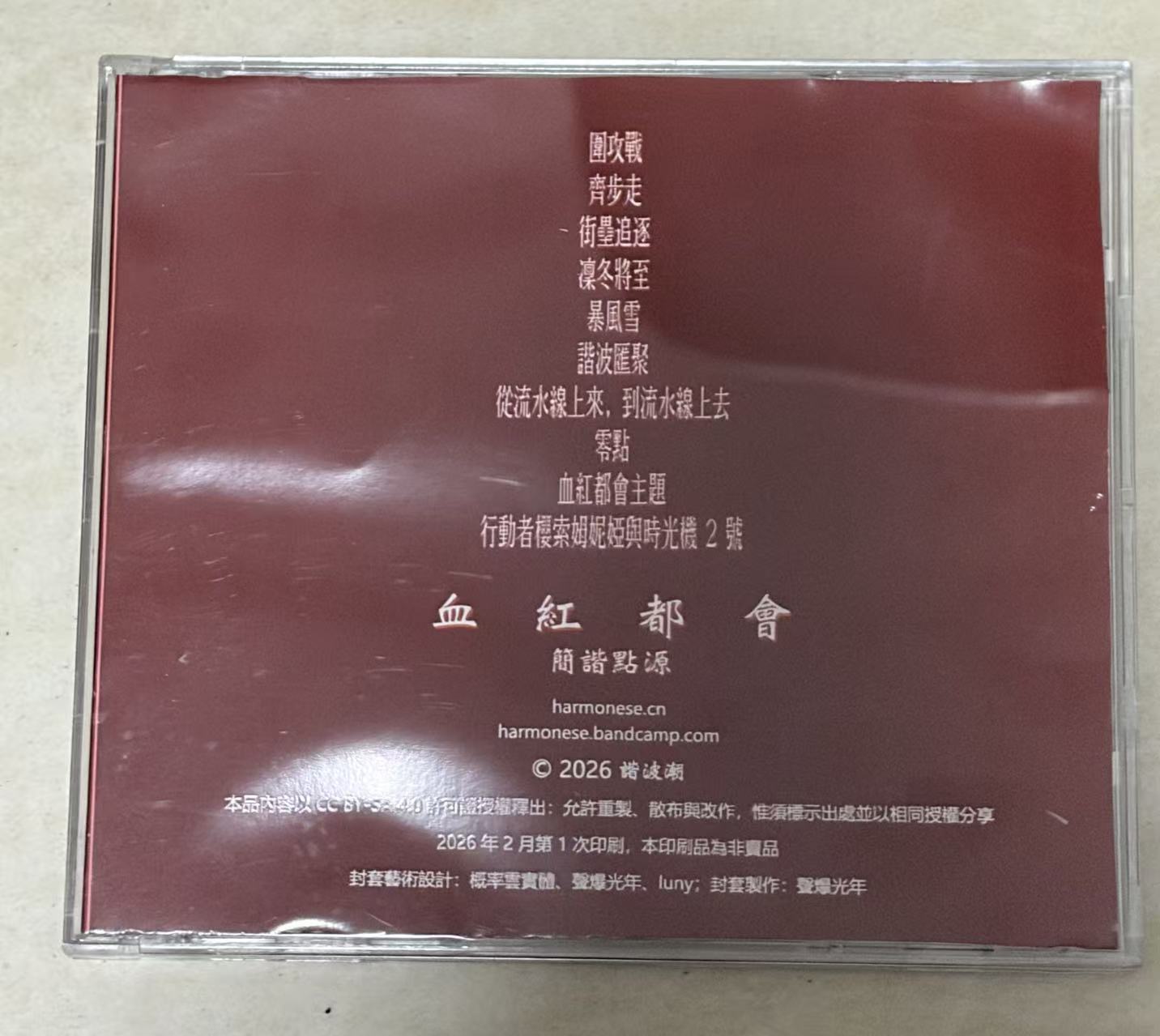 《血紅都會》第一批 CD 正式出炉!首批 CD 完全由乐队成员亲手完成制作(详细制作流程与教程将在不久后公布),限量 25 张,可通过以下方式购入: